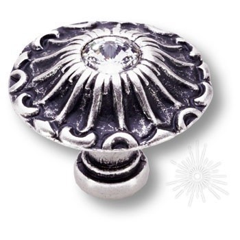 Ручка кнопка 15.304.24SWA16, материал Замак, отделка Кристаллы Swarovski Серебро, 22*d=24 мм